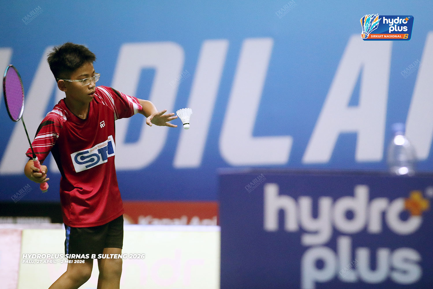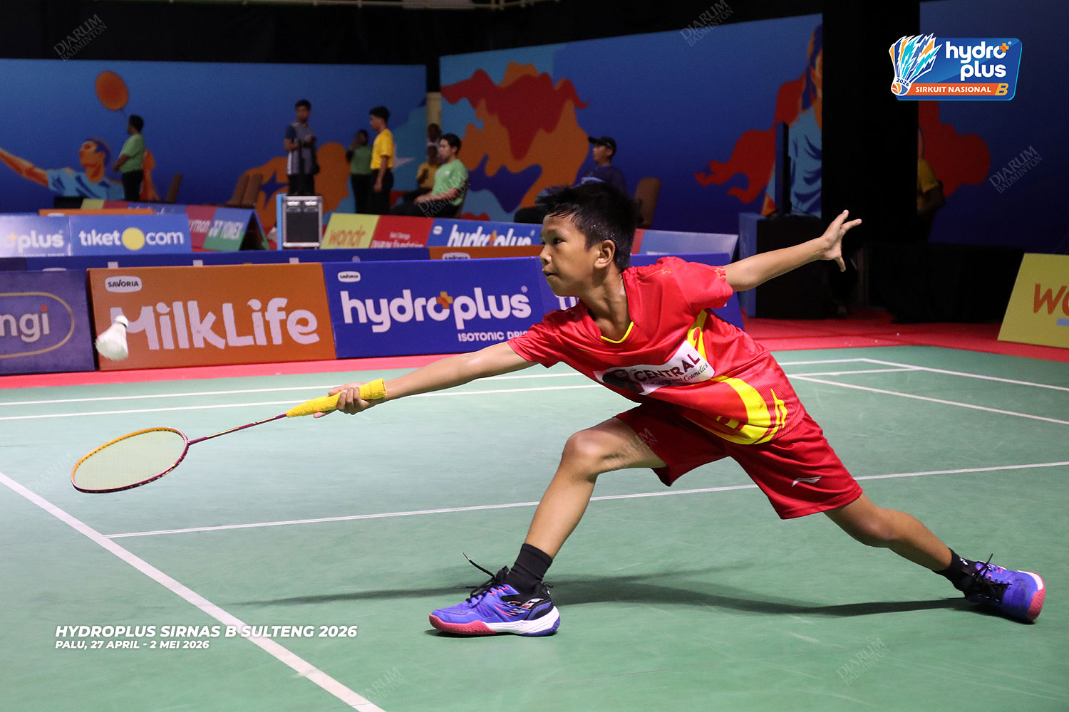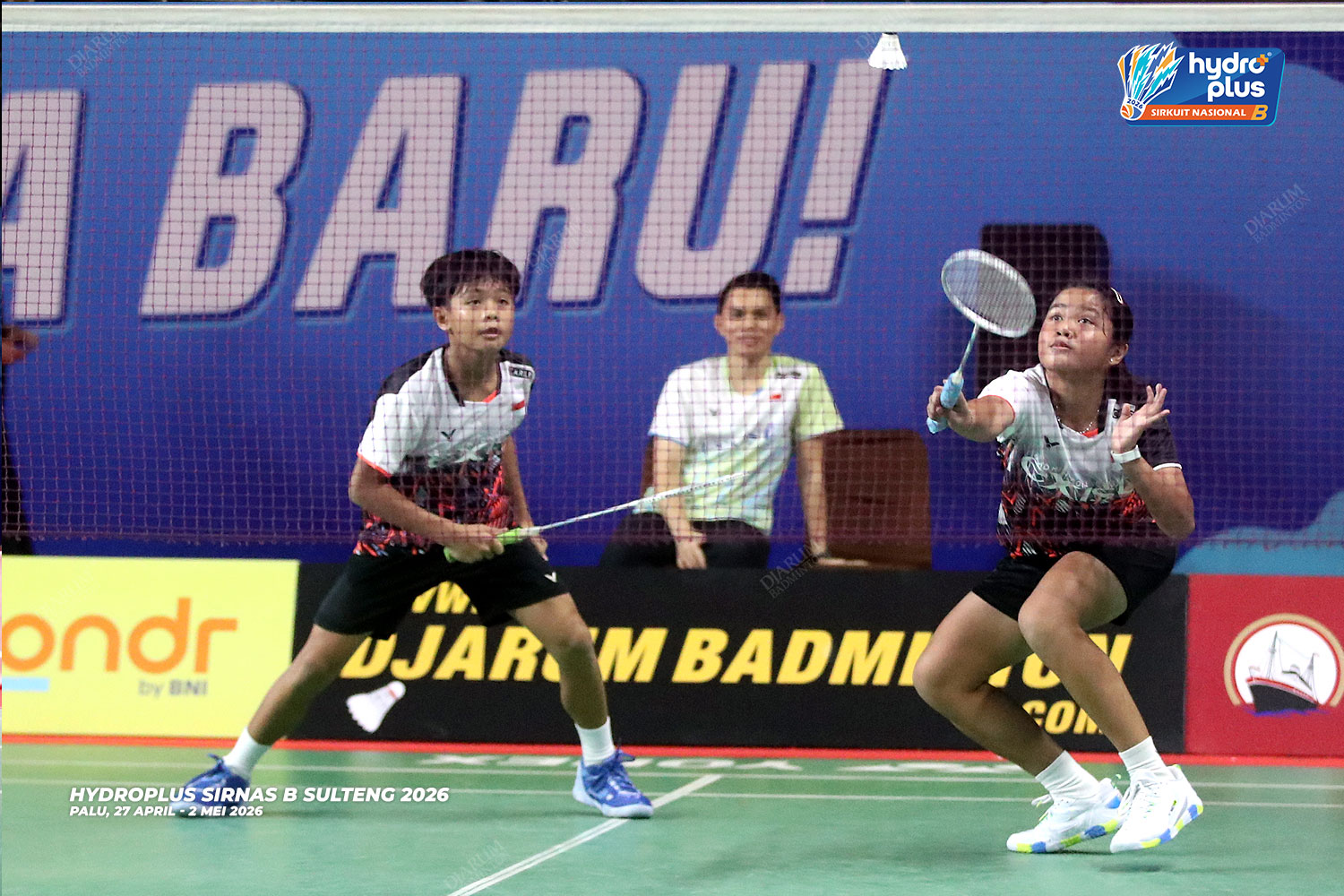 Suasana pertandingan pada hari pertama HYDROPLUS Sirkuit Nasional B Sulawesi Tengah di GOR Gelora Bumi Kaktus Andi Raga Pettalolo, Palu
