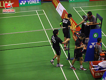 Menyalami wasit usai pertandingan (Tangkas Alfamart VS Djarum)