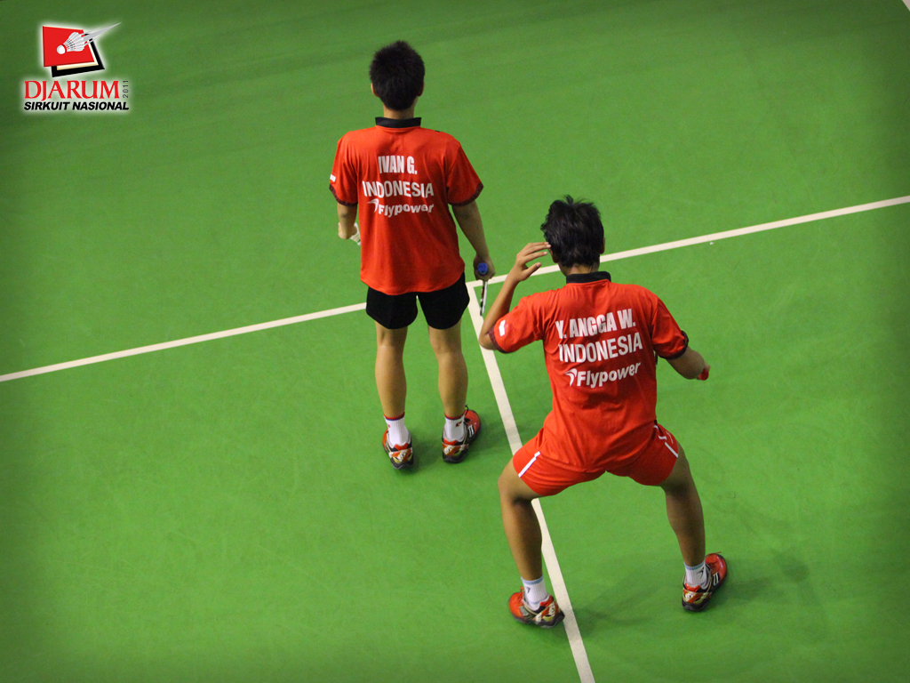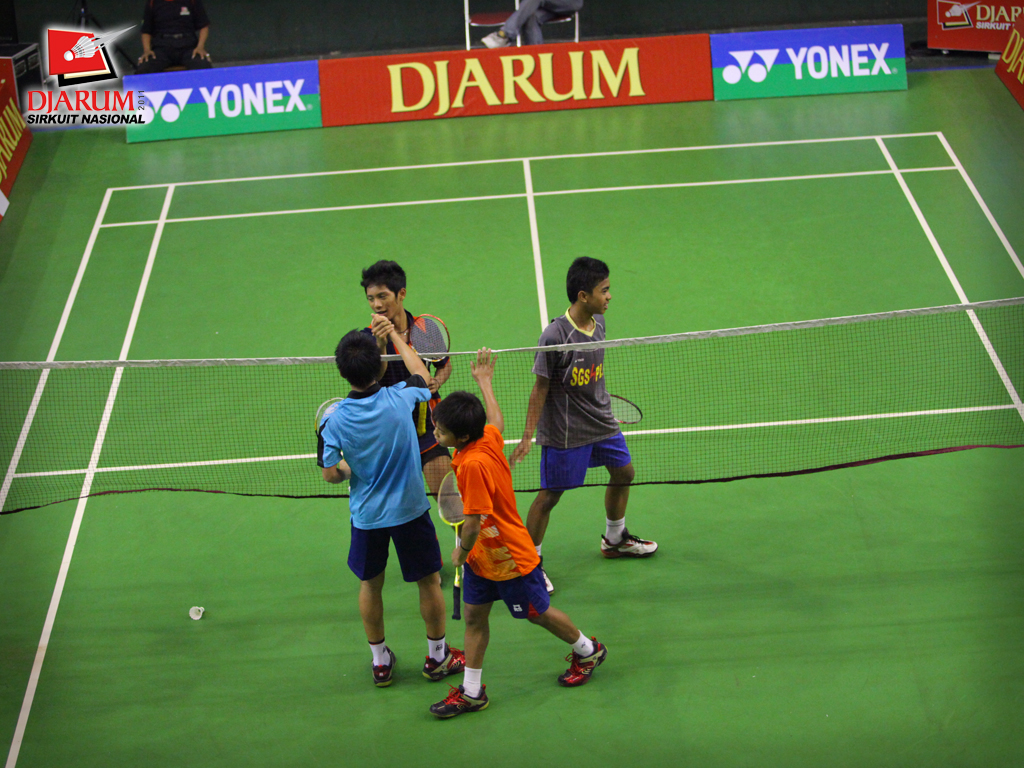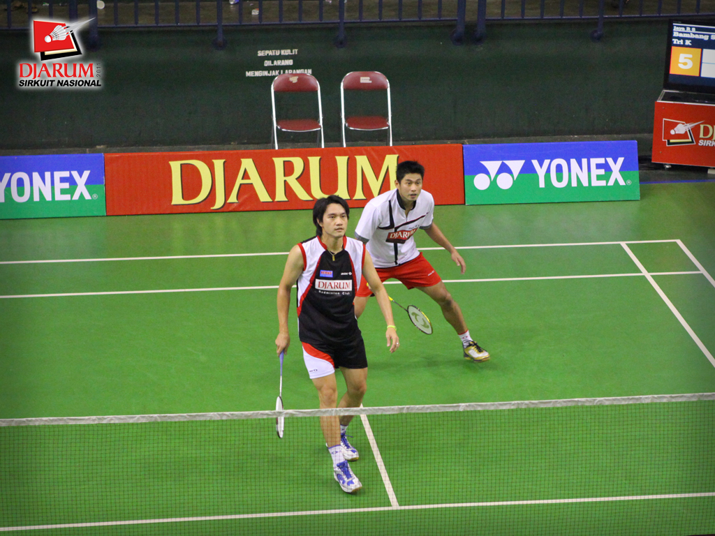 Fernando-Wifqi (PB. Djarum) setelah membalas kok lawan