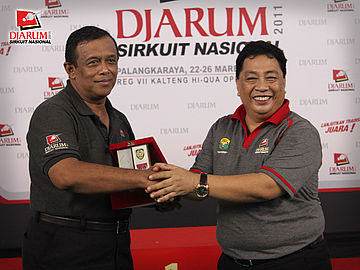 Ketua Umum PB PBSI Djoko Santoso menerima Plakat dari H. Darwan Ali, Ketua Umum Pengprov PBSI Kalteng