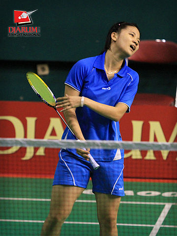 Ekspresi kekecewaan pemain Surya Baja, Silvina Kurniawan dalam babak Semifinal dewasa putri Djarum Sirkuit Nasional Surabaya di GOR Sudirman, Surabaya, Jum`at (4/11)