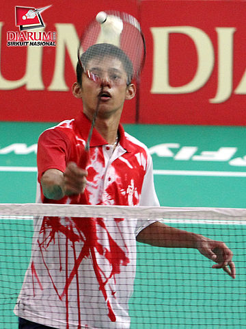 Pemain tunggal dewasa putra asal Pertamina, Alamsyah Yunus berusaha mengembalikan kok ke arah pemain Pusdiklat Jaya Raya, Ichwan Nur Hakim.