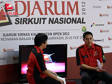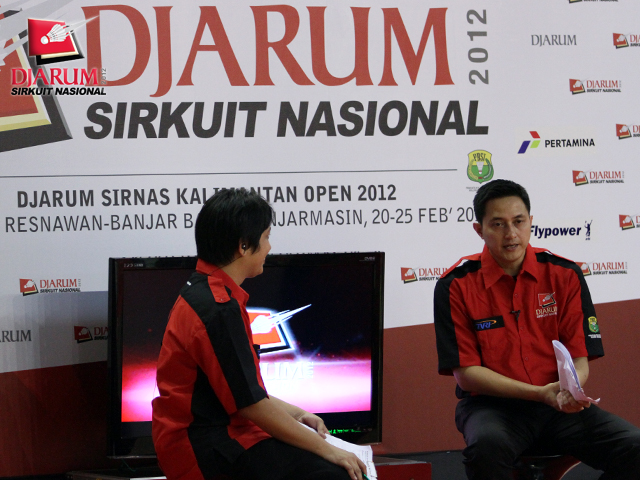 Mantan pemain nasional, Ricky Subagja (kanan), menjadi komentator pada Djarum Sirkuit Nasional Kalimantan Open 2012.