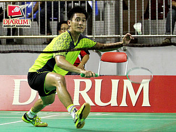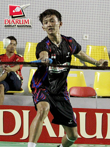 Ihsan (PB Djarum Kudus) berusaha mengembalikan bola meski terlihat mulai kelelahan.