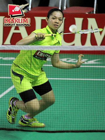 Tresna Novelia (PB Djarum Kudus) saat melakukan serve.