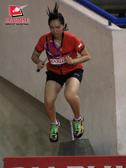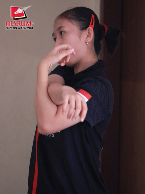 Pemain PB Djarum, Tresna Navelia C.R sedang melakukan pemanasan sebelum mulai bertanding.