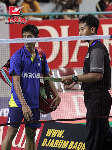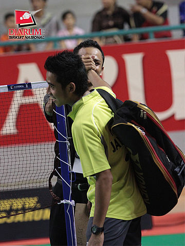 Fauzi Adnan dari PB Jaya Raya Suryanaga sedang menunggu kehadiran lawannya, Maulana dari PB Naga Jaya dalam pertandingan babak kedua tunggal dewasa putra. Fauzi akhirnya dinyatakan menang walkover.
