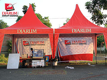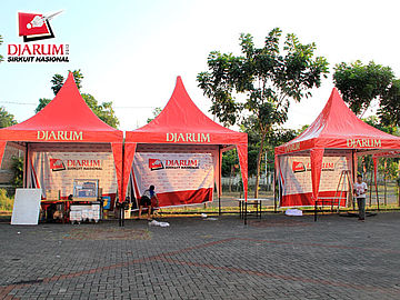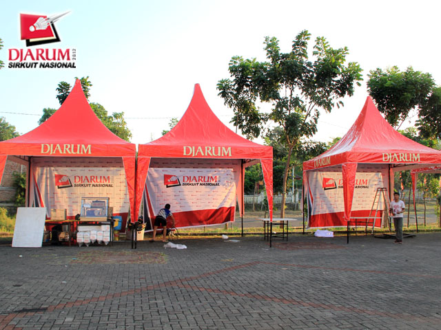 Persiapan di salah satu tenda yang akan membuka standnya di depan GOR Jati Diri Semarang.