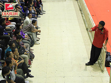 Salah seorang panitia sedang memberikan pengarahan kepada para hakim garis sehari sebelum acara dimulai.