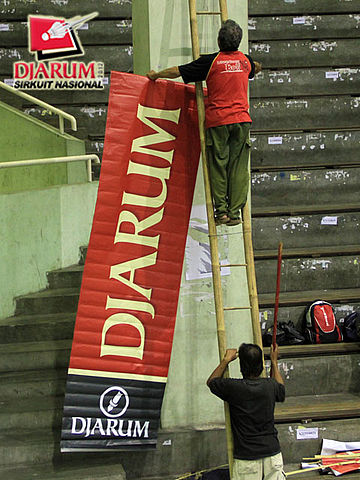 Para panitia yang sedang memasang spanduk di setiap sudut GOR Jati Diri Semarang sehari sebelum perhelatan berlangsung.