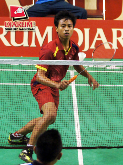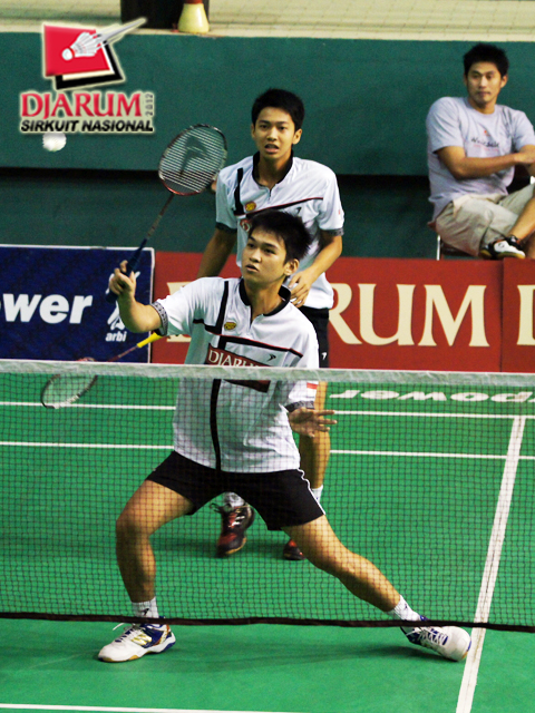 Pasangan Ganda Taruna Putra PB Djarum Kudus, Aldino Alwafi/Amal Ori melepaskan serangan bertubi-tubi ke arah pasangan Bagus/Wahyu (Bintang Terang).