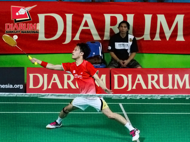 Naohiro Matsukawa (Hitachi Jepang) berhasil mengembalikan serangan dari Evert Sukamta (Tangkas Specs).