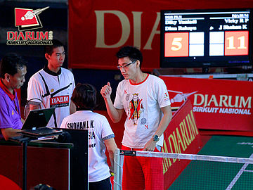 Vicky Rizky/Jessica Shohan (PB Djarum) saat mendapatkan pengarahan dari pelatih.