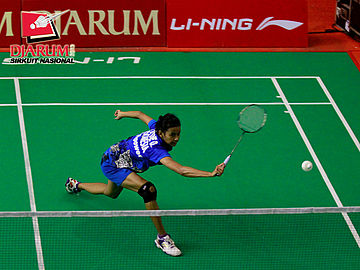 Dinar Dyah Ayustine (Djarum Kudus) mengembalikan dropshot lawan.