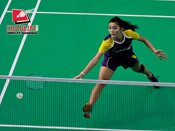 Melisa Andesti (Djarum Kudus) berusaha menggapai kok.