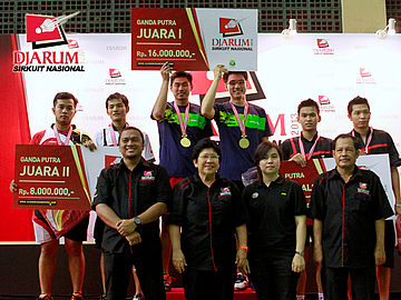 Icuk Sugiarto dan Fuad Basya saat penutupan Djarum Sirkuit Nasional Jakarta Open 2013.