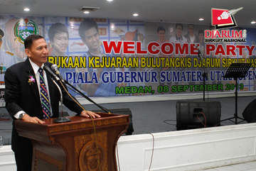 Mayjen. Fuad Basya saat memberikan sambutan dalam acara Welcome Party Djarum Sirkuit Nasional Sumatera Utara Open 2013 di Aula Martabe, perkantoran Gubernur Sumatera Utara, Medan.