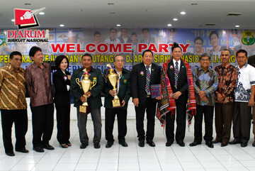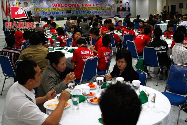 Suasana Welcome Party Djarum Sirkuit Nasional Sumatera Utara Open 2013 di Aula Martabe, perkantoran Gubernur Sumatera Utara, Medan.
