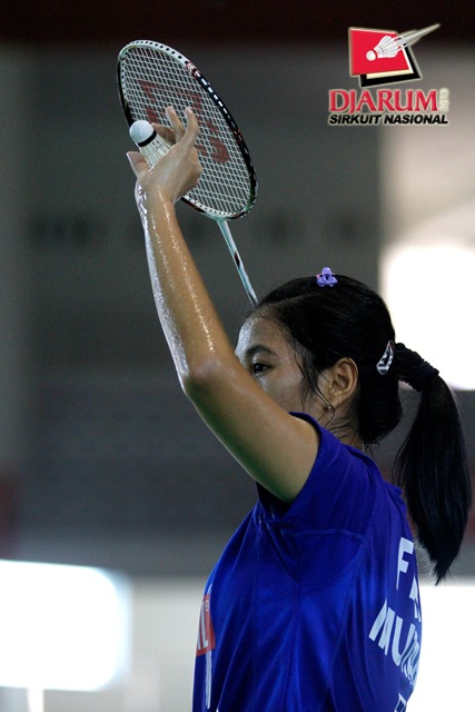 Rifa Putri (PB Djarum) bersiap mengembalikan shuttlecock ke arah Santa Jesica (PB Wahidin).
