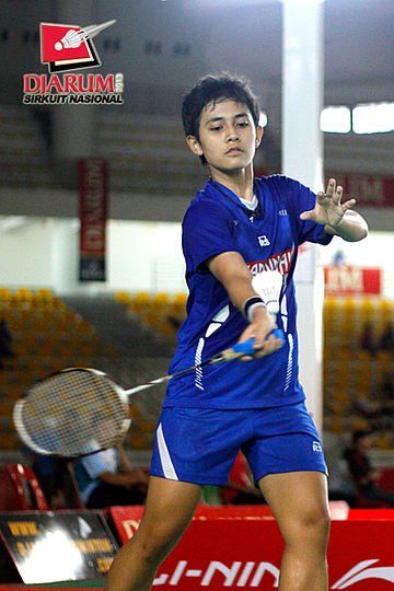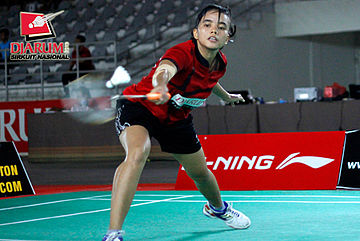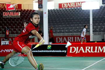 Arinda Sari Sinaga (PB Djarum) berhasil menghadang serangan dari Elizabeth Matindas (SGS PLN).