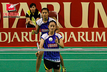 Cynthia Shara Ayunidha/Felicia Parmenas (DJARUM) terima serve lawan.