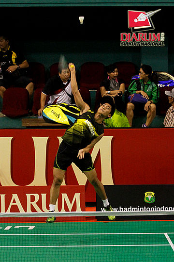 M. Takhjul Arifin Billah (BAYU KENCANA) mencoba menggapai shuttlecock.