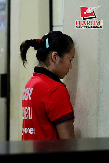 Felicia Parmenas (DJARUM) sedang berdoa sebelum bertanding.