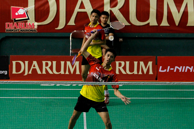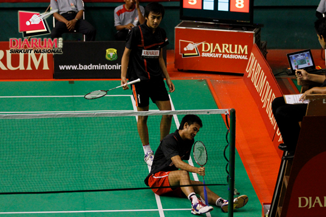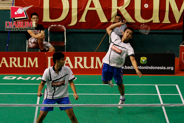 Angger Sudrajad/Satrya Aditha (DJARUM) jatuh bangun menghadapi Franky Wijaya/Sabar Karyaman Gutama (EXIST).
