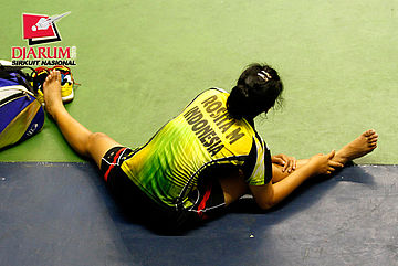 Maya Rosita (Citra Raya Unesa) melakukan pendinginan setelah bertanding.
