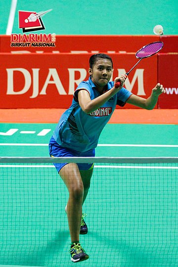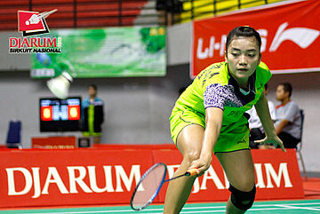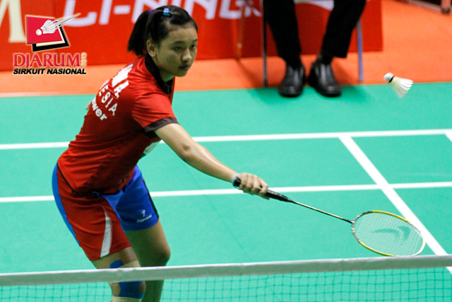 Syafitri Nur Azizah (PB Djarum) bersiap menyambar pengembalian dari Jauza Sugiarto (Pelatprov DKI Jakarta).