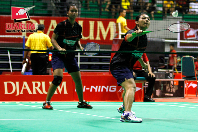 Variella Aprilsasi/Vita Marissa (Jaya Raya Suryanaga/PB Djarum) berhasil mengecoh pasangan Dian Permatasari/Natalia Poluakan (Tangkas Specs).