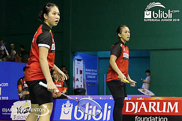 Nita Violina Marwah/Putri Syaikah Ulima Hidayat (PB. EXIST) bersiap melepaskan serangan
