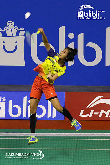 Putri Kusuma Wardani (PB. EXIST) mengembalikan shuttlecock