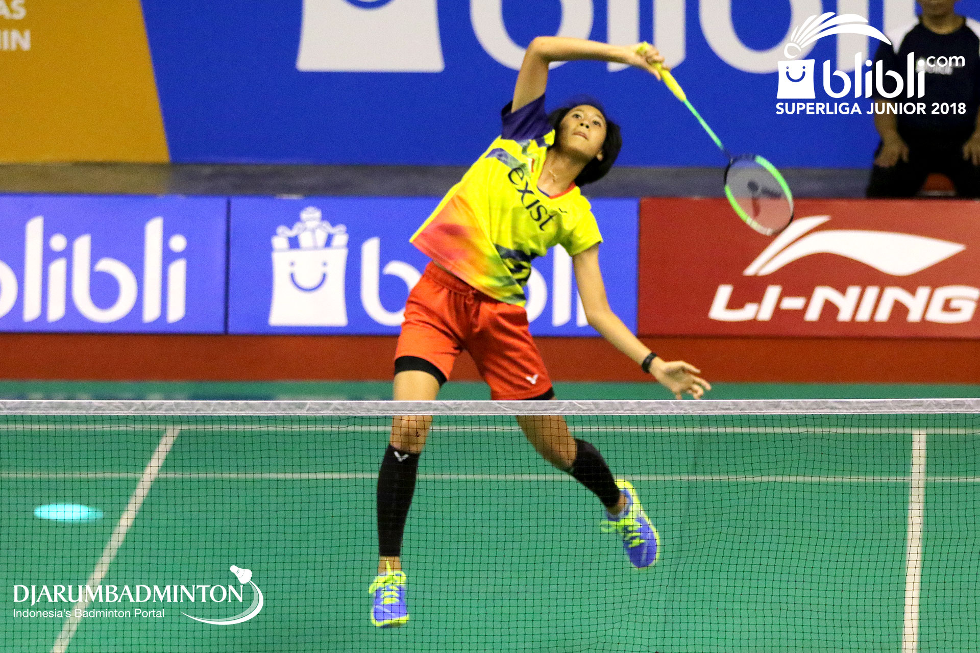 Putri Kusuma Wardani (PB. EXIST) melepaskan smash
