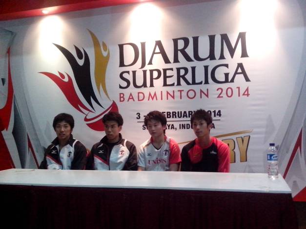 SURABAYA - Setelah memetik kemenangan di hari pertama pelaksanaan Djarum Superliga 2014 di DBL Arena, Surabaya, hari ini (4/2/2014), tim PB Djarum sektor putera akhirnya harus mengakui keperkasaan tim asing Unisys Jepang di laga kedua babak penyisihan Grup B. Djarum menyerah dengan skor tipis 2-3.