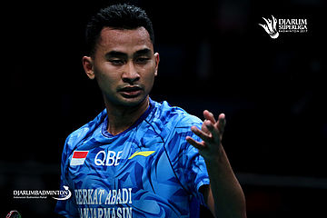 Tommy Sugiarto (PB Berkat Abadi) mempersilahkan pergantian shuttlecock.