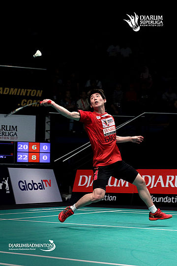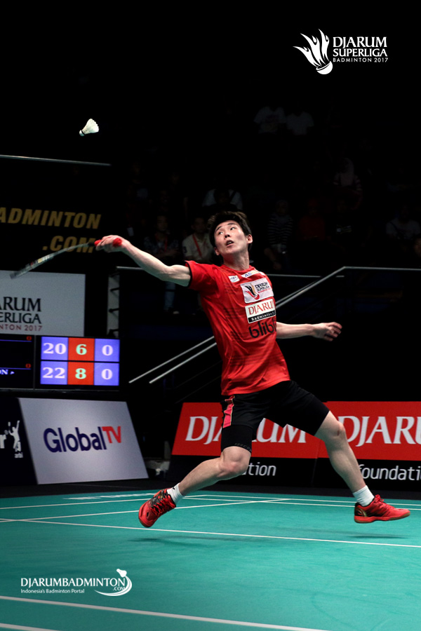 Son Wan Ho (PB Djarum) melepaskan serangan.