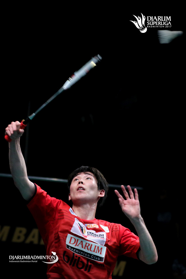 Son Wan Ho (PB Djarum) menyambut pengembalian.