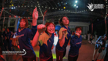 Keseruan Atlet Team Putri Samurai Japan Reptiles saat mengikuti acara hiburan pada Gala Dinner Djarum Superliga 2019
