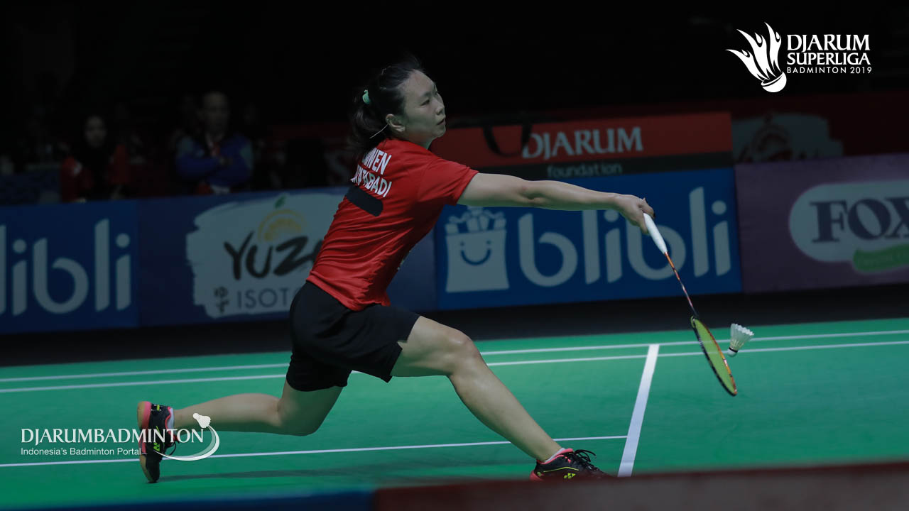 Zhang Beiwen (Berkat Abadi) mengembalikan shuttecock